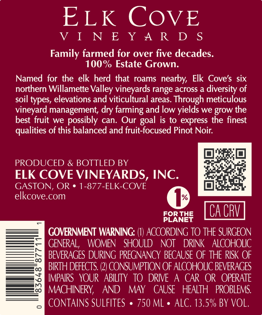 - 2024 Willamette Valley Pinot Noir – Back