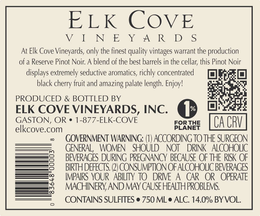 - 2023 Reserve Pinot Noir – Back
