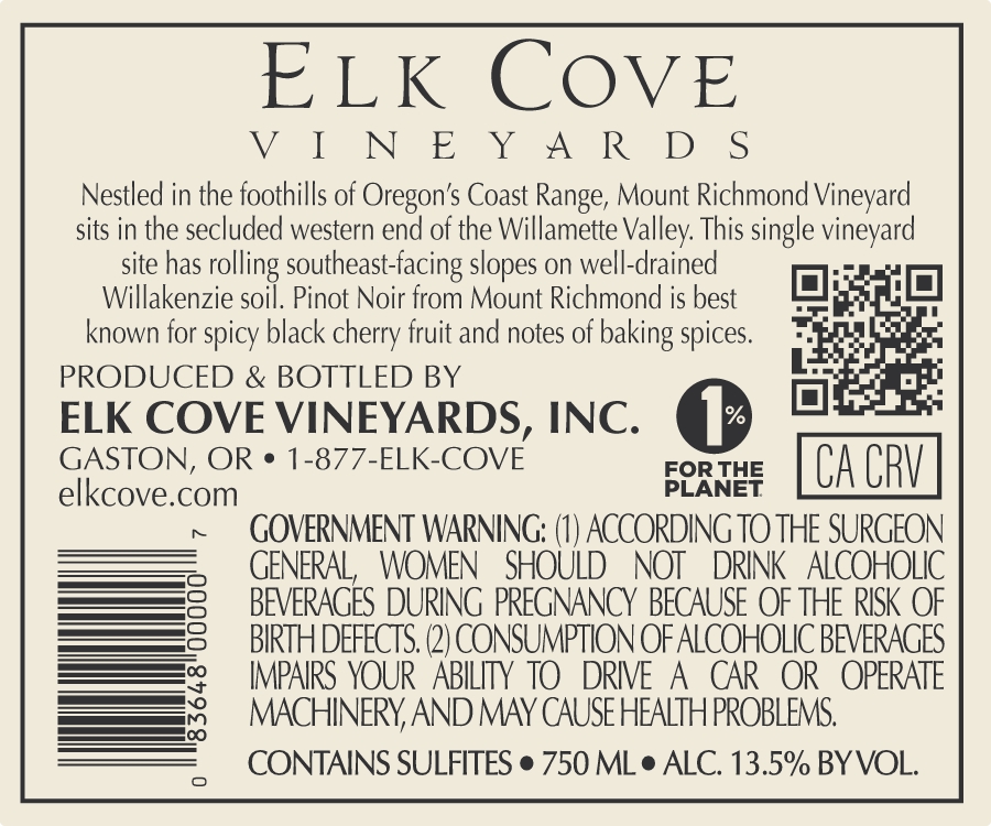 - 2023 Mount Richmond Pinot Noir – Back