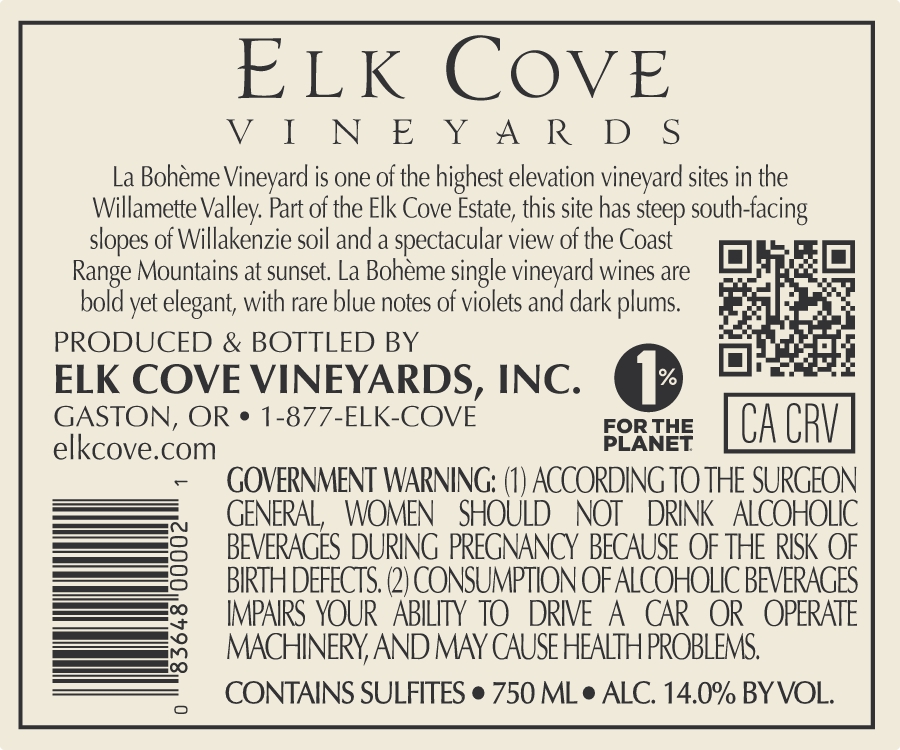 - 2024 La Bohème Pinot Noir – Back