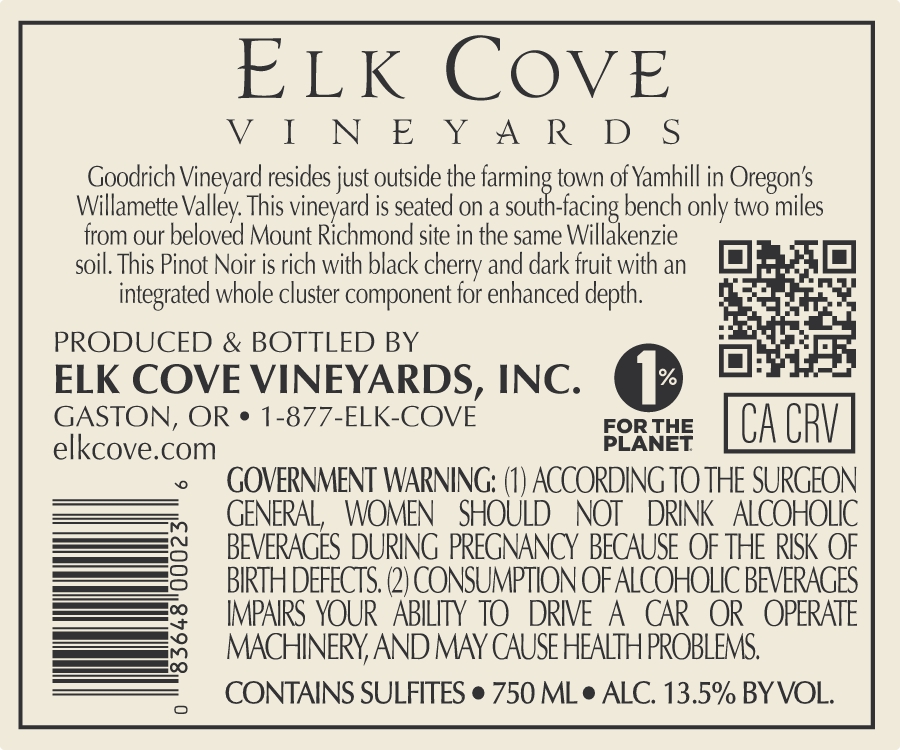 - 2023 Goodrich Pinot Noir – Back