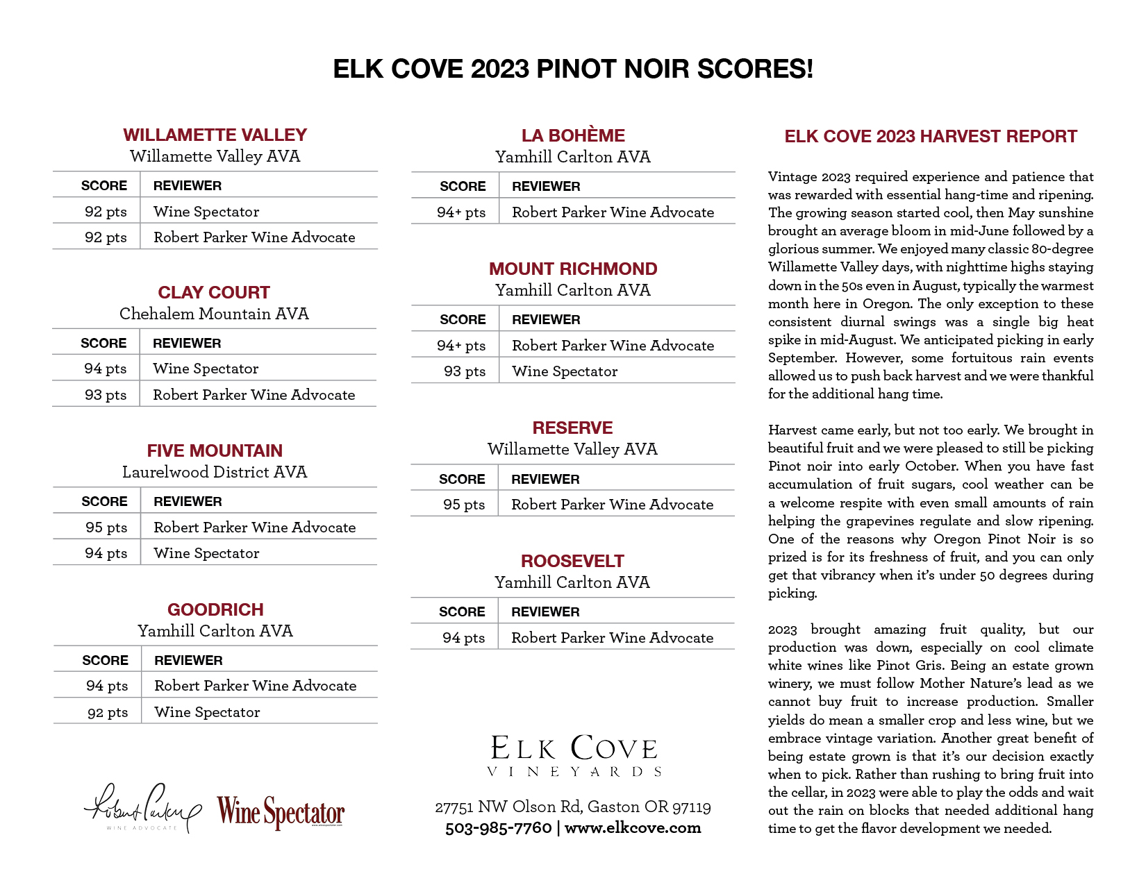 This sell sheet features the Wine Enthusiast Top 100 logo and 92 point score for our 2019 Pinot Gris. This is a word doc, prices must be added: